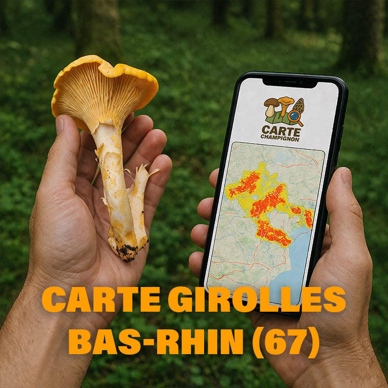 La girolle affectionne les sous-bois frais, les sols légèrement acides et les forêts bien établies. Notre carte interactive pour le Bas-Rhin (67) s’appuie sur ces critères pour vous signaler les secteurs où les conditions naturelles sont les plus favorables à sa pousse.