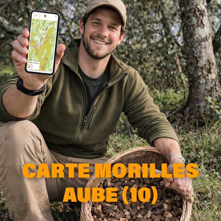 Carte Morilles Aube 10 : zones propices à la cueillette. Produit numérique avec accès 1 an, idéal pour préparer vos sorties.