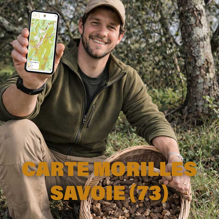 Carte Morilles Savoie 73 : zones propices à la cueillette. Produit numérique avec accès 1 an, idéal pour préparer vos sorties.